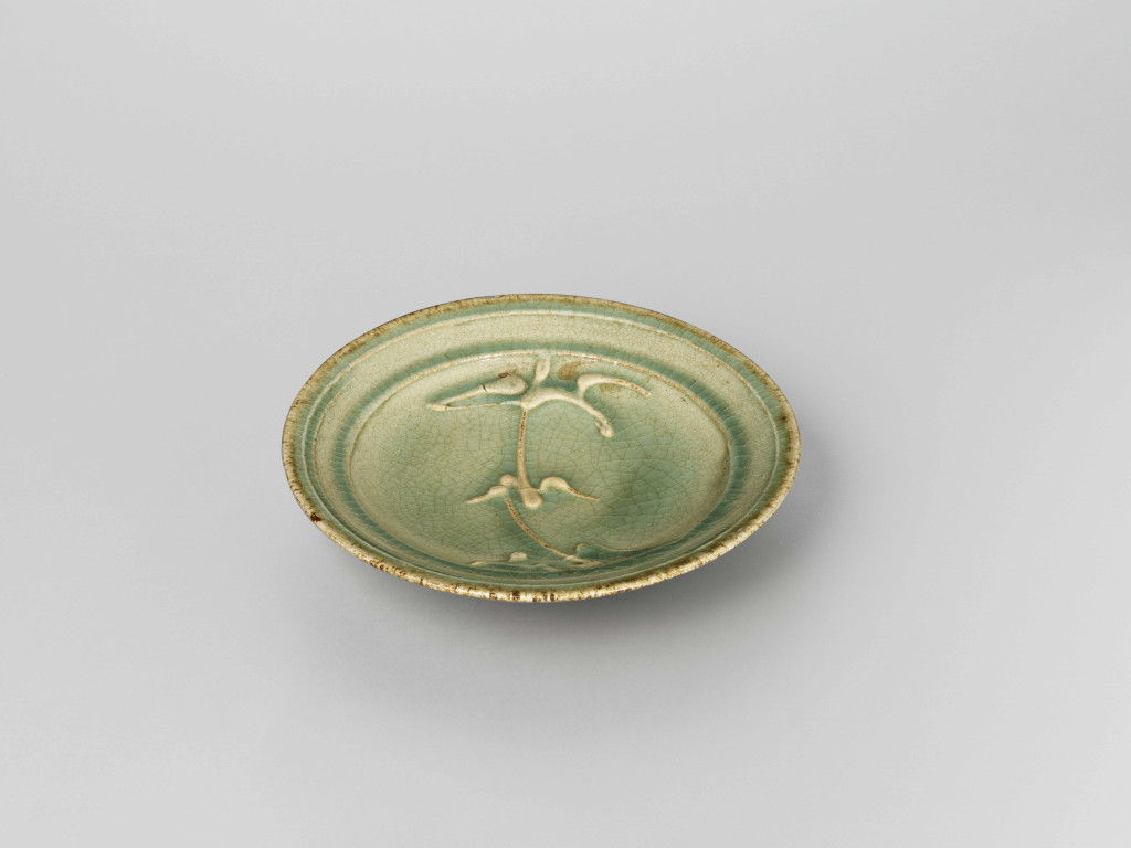 河井寬次郎:泥青瓷筒描笹文鉢 (1935)