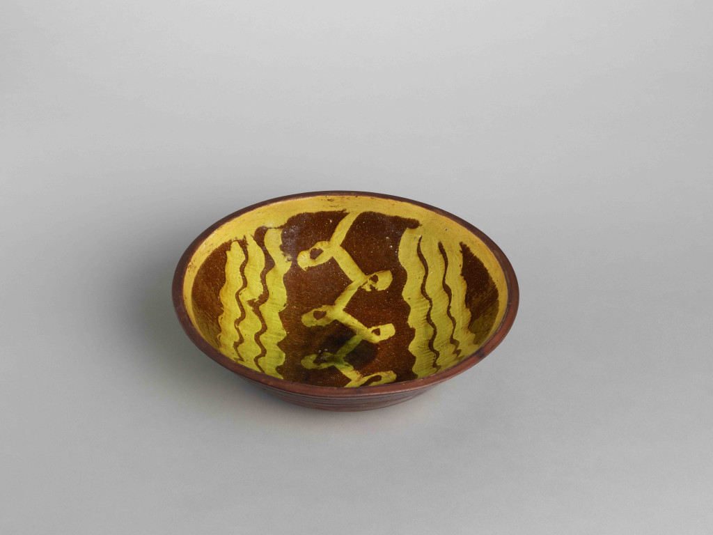 河井寬次郎:黄釉象嵌縞文鉢 (c.1936)