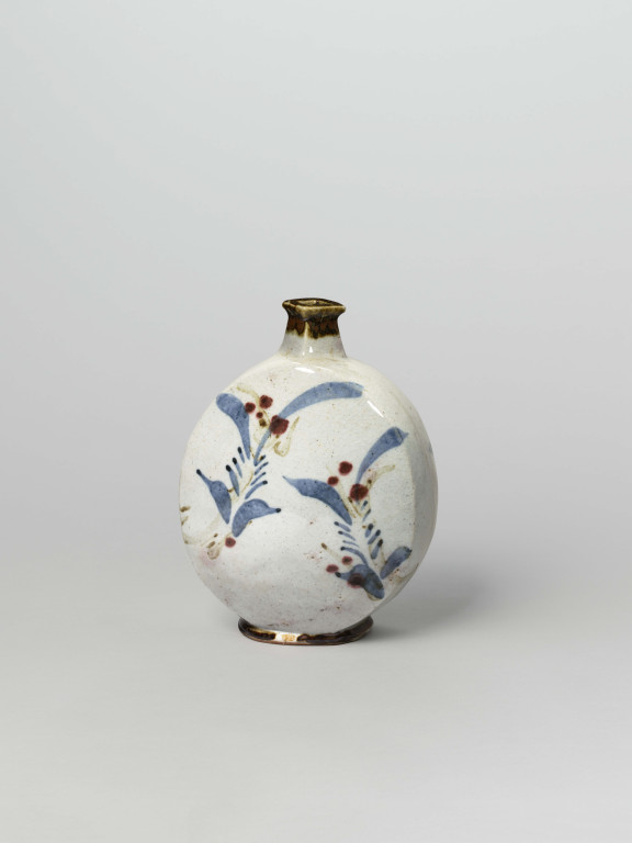 河井寬次郎:白地草花文扁壺 (c.1937)