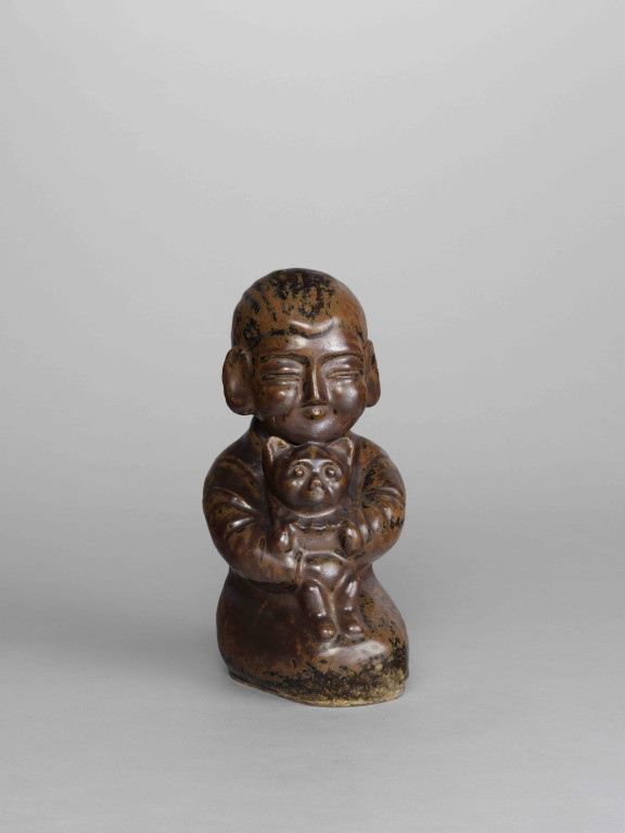 河井寬次郎:鉄薬陶彫 少女と猫 (1937)