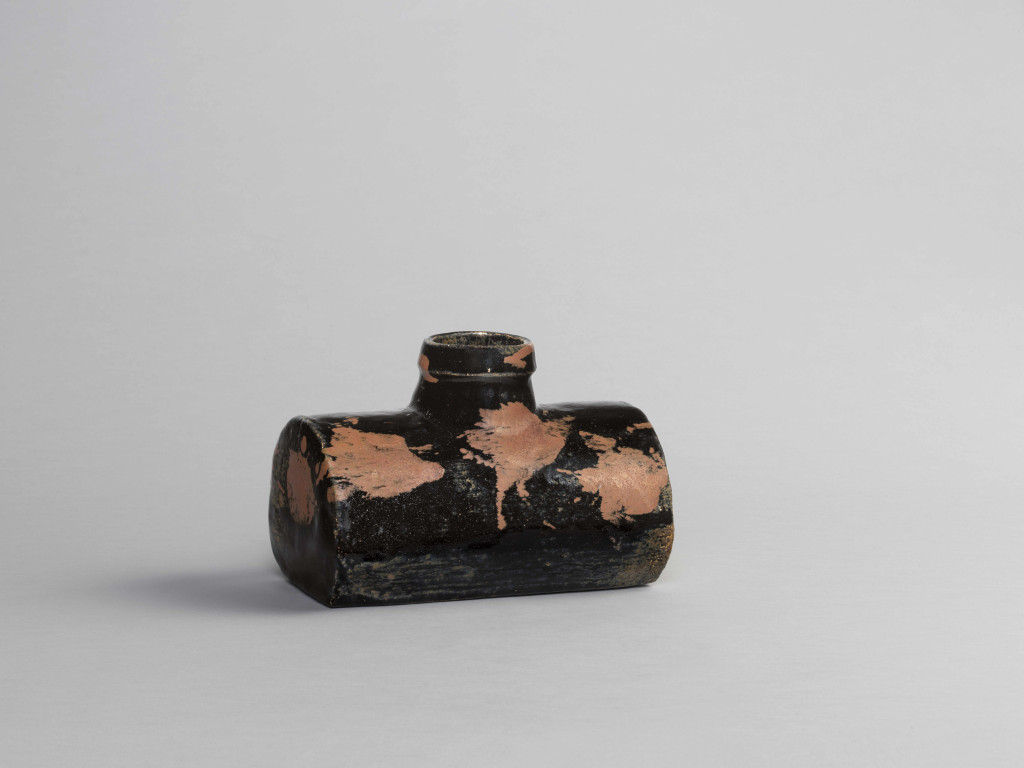 河井寬次郎:鉄打薬扁壺(鉄薬扁壺) (c.1940)