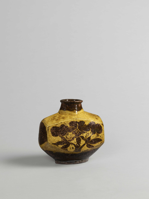 河井寬次郎:象嵌草花文扁壺 (c.1941)