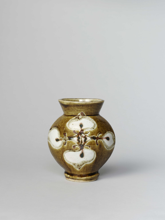 河井寬次郎:鉄薬菱花文扁壺 (c.1941)