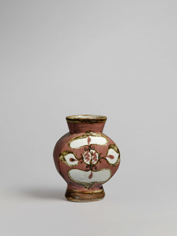河井寬次郎:辰砂菱花文扁壺 (c.1941)