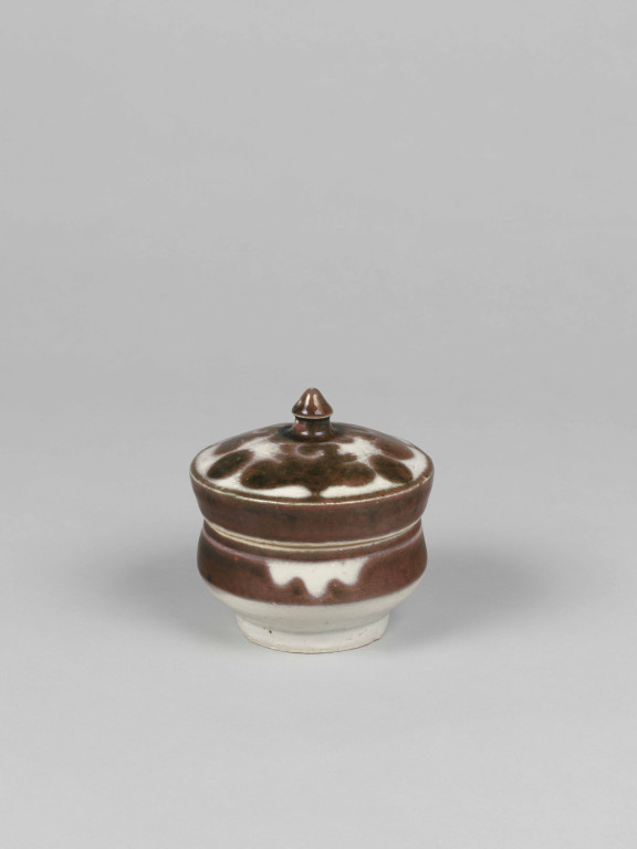 河井寬次郎:辰砂菱花文蓋物 (c.1945)