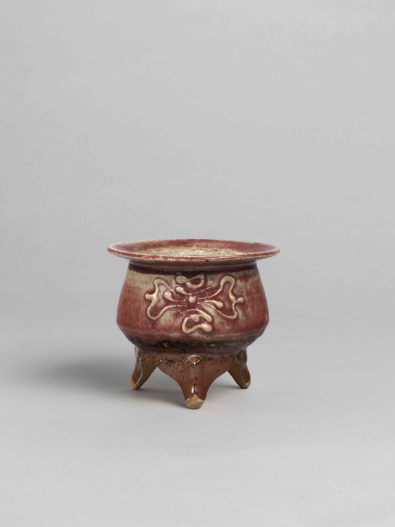 河井寬次郎:辰砂筒描菱花文香炉 (c.1948)