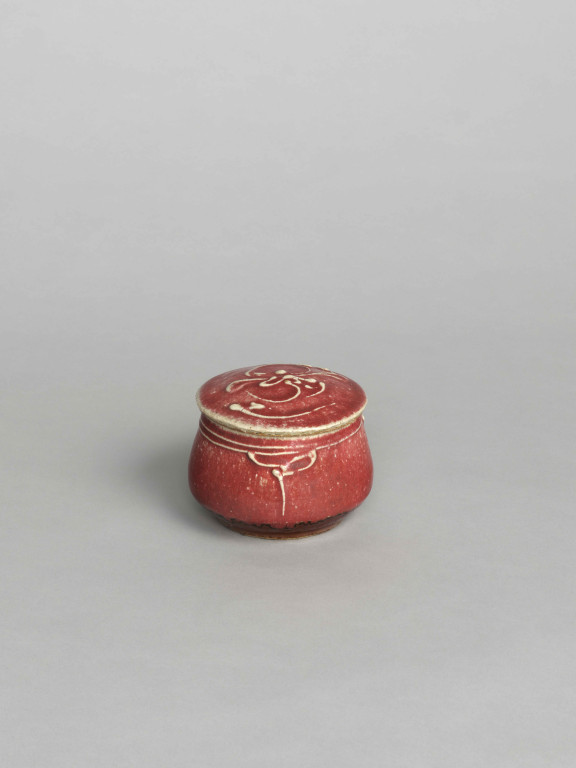 河井寬次郎:辰砂筒描花文食籠 (1950)
