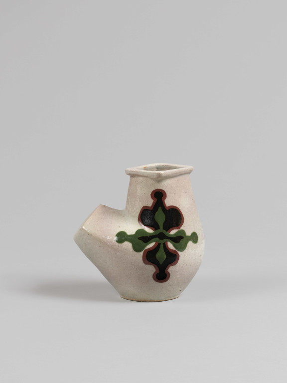 河井寬次郎:白地花文扁壺 (c.1950)