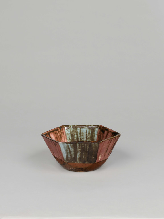 河井寬次郎:辰砂呉洲六方鉢 (c.1950)