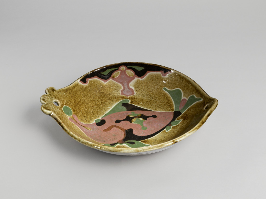 河井寬次郎:黄釉魚文鉢 (1951)