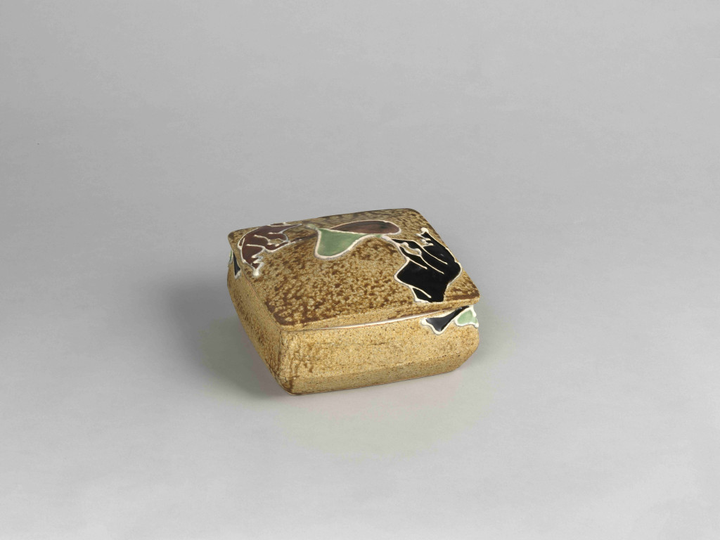 河井寬次郎:黄釉筒描双手文食籠 (c.1952)