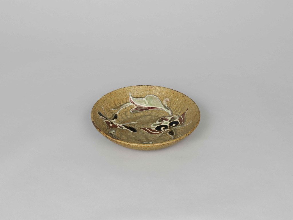 河井寬次郎:黄釉筒描草花図鉢 (c.1953)