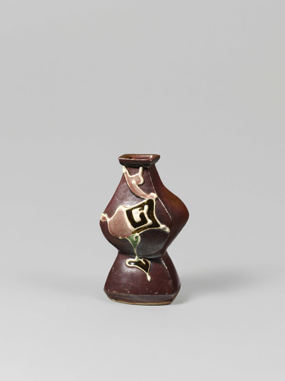 河井寬次郎:鉄薬筒描花文扁壺 (c.1953)