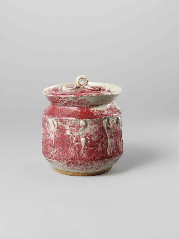 河井寬次郎:辰砂筒描水指 (c.1954)