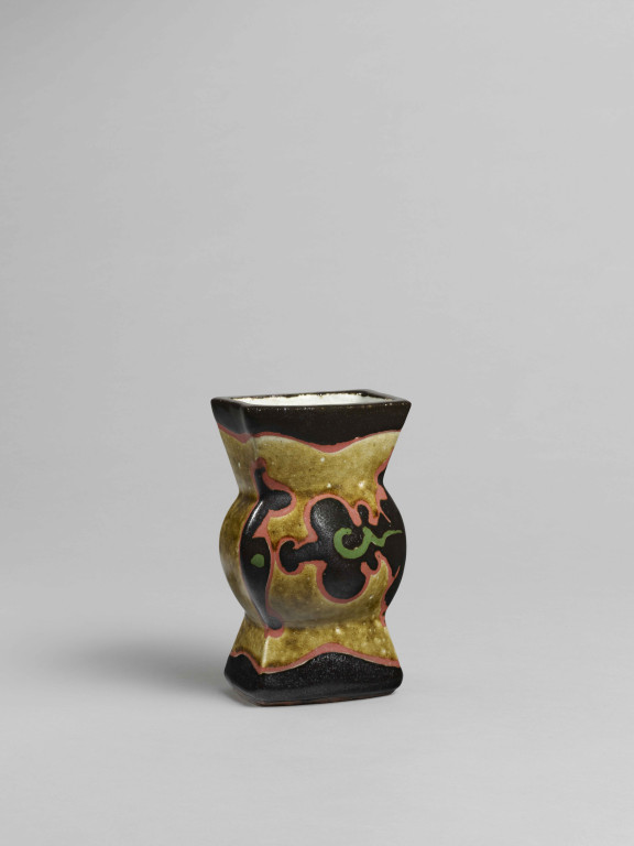 河井寬次郎:黄釉花文扁壺 (1952)