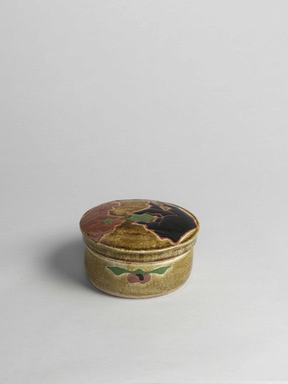 河井寬次郎:黄釉双手文筥 (1952)