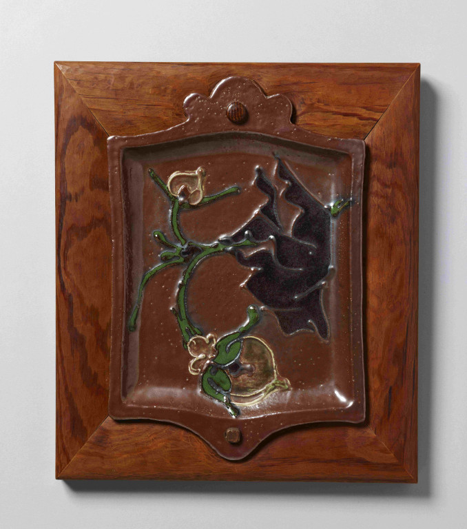 河井寬次郎:鉄薬筒描花文陶板 (c.1951)