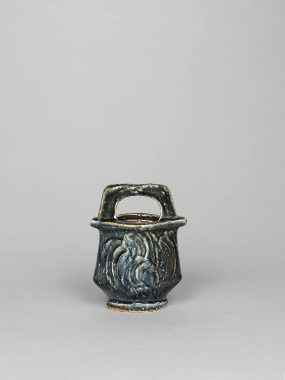 河井寬次郎:呉洲泥刷毛目手付壺 (c.1965)