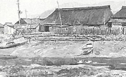 池田遙邨:(干し網) (1913)