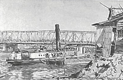 池田遙邨:(ぽんぽん蒸気) (1913)