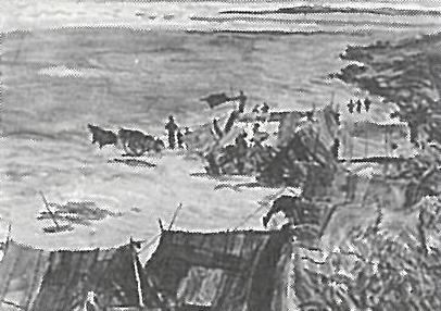 池田遙邨:(テント張る人) (1912-15)