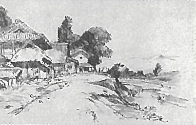 池田遙邨:習作(川沿いの村) (1912-15)