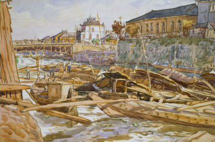 池田遙邨:(荷揚げする人) (1912-15)