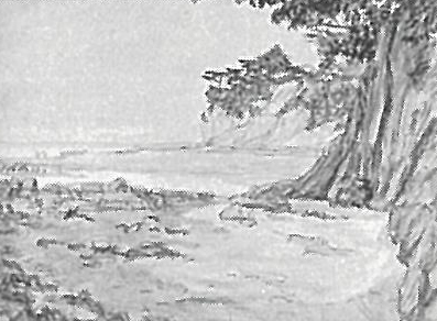 池田遙邨:(岩壁の浜) (1912-15)