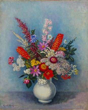 長谷川潔:白い花瓶に挿した草花 (1948)