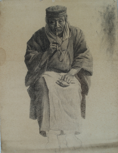 千種掃雲:キセルを吸う老人 (明治末)