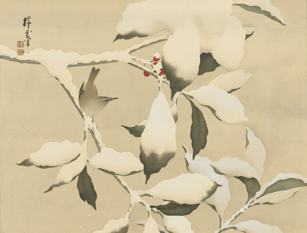 千種掃雲:青木に小禽 (Early Showa Era (c.1926-40))