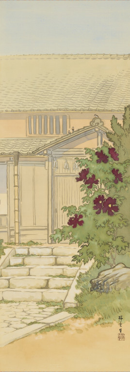 千種掃雲:牡丹の花咲く玄関先 (Late Meiji Era (c.1900–12))
