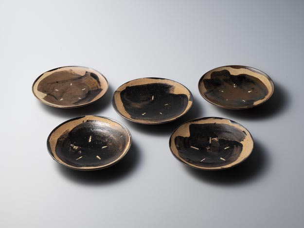 石黒宗麿:黒釉刷毛目皿 (c.1957)