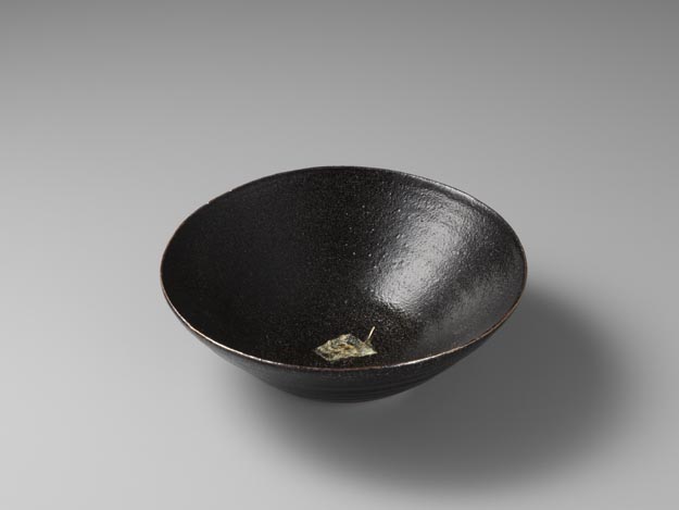 石黒宗麿:黒釉葉文碗 (c.1950-55)