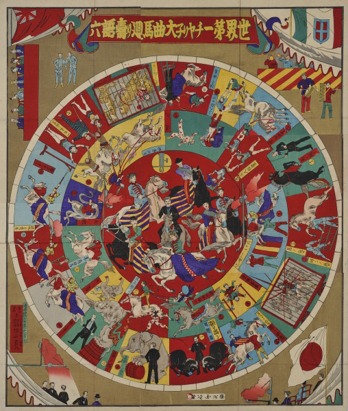 橋本周延:世界第一チャリ子大曲馬廻り寿語六(川西英手製「曲馬資料集」) (date unknown)