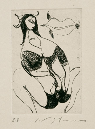 池田満寿夫:女と恋の鳥、習作 (1958)