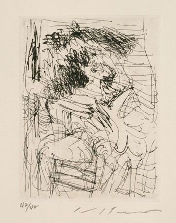 池田満寿夫:寝台の上の美女(座せる女)、習作 (1961)