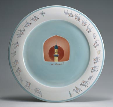 三浦小平二:青磁豆彩大皿 シルクロード (1985)