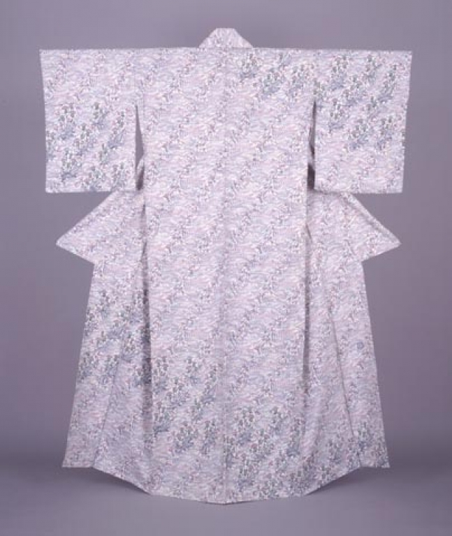 釜我敏子:型絵染着物 春の野 (1992)