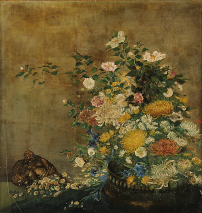 櫻井忠剛:銅器の花と布袋の置物 (c. 1900)
