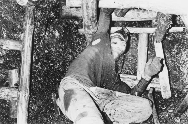 奈良原一高:「人間の土地」より 緑なき島−軍艦島: 地底880m、採炭現場 (1954-57 (printed 1986))