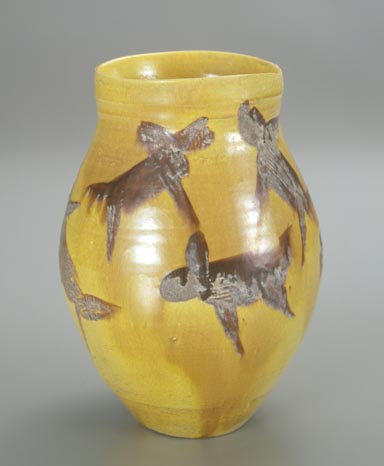 石黒宗麿:黄釉犬文壺 (c.1959)
