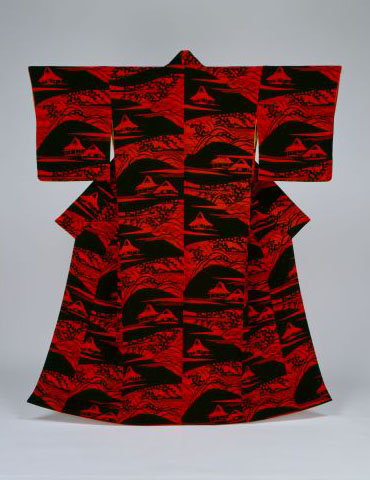 稲垣稔次郎:型絵染野草村落模様着物 (date unknown)