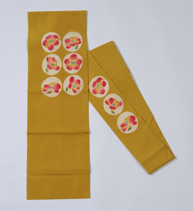 稲垣稔次郎:型絵染紅梅模様帯 (date unknown)