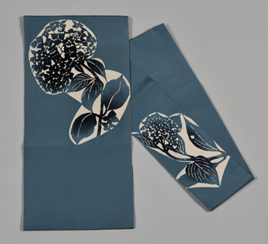 稲垣稔次郎:型絵染紫陽花模様帯 (date unknown)