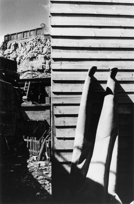 奈良原一高:「人間の土地」より 緑なき島−軍艦島: 潜水服のある風景 (1954-57 (printed 1986))