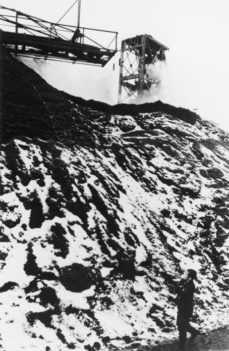 奈良原一高:「人間の土地」より 緑なき島−軍艦島: 雪の貯炭場の少年 (1954-57 (printed 1986))