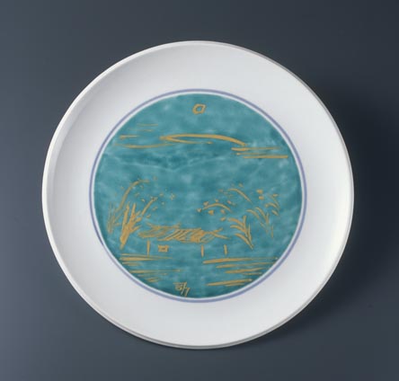 富本憲吉:色絵金彩竹林月夜皿 (1962)