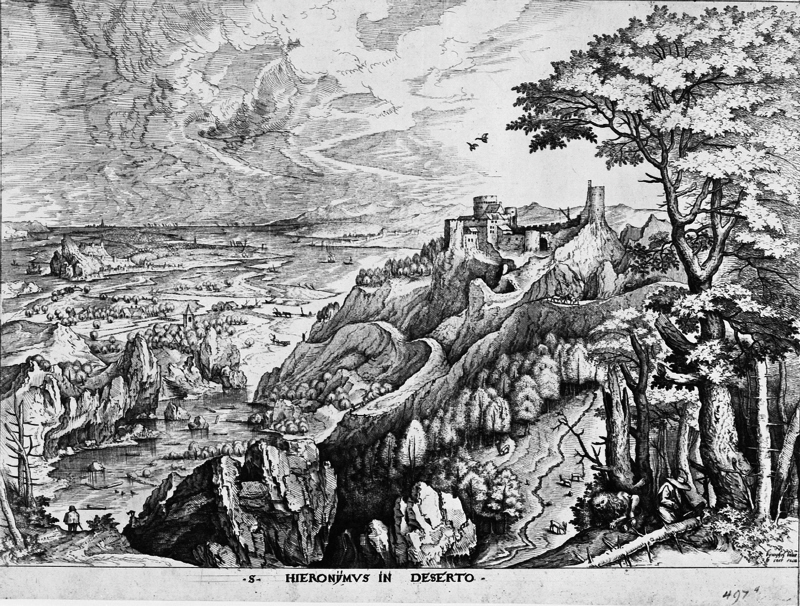 ブリューゲル、ピーテル(原画) / ファン・ドゥークテム、ヨハネス/ファン・ドゥークテム、ルカス:『大風景画』:荒野の聖ヒエロニムス(ピーテル・ブリューゲルの下絵による) (c. 1555-56)