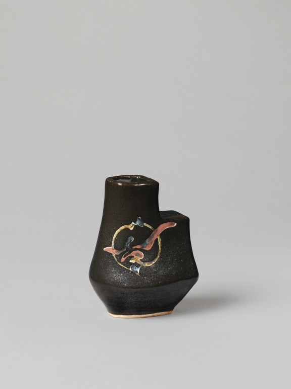 河井寬次郎:黒釉草花文扁壺 (c.1948)